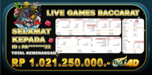 BUKTI JACKPOT KEMENANGAN Rp.1,021,250,000 DI SITUS OLI4D